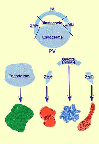 - Les cellules végétatives donnent de l'endoderme indifférencié.