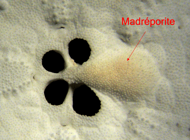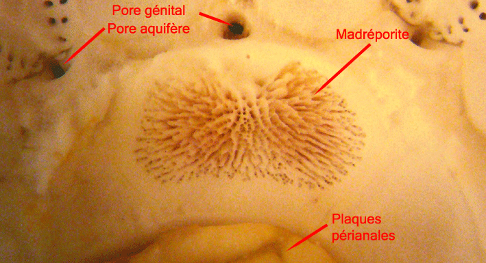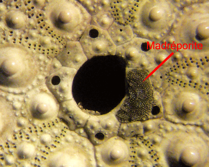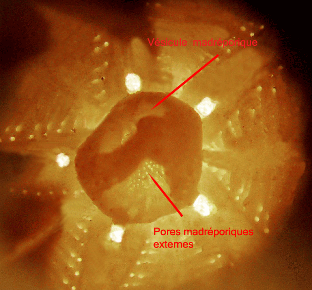 La plaque madréporaire percée de nombreux pores fait office de filtre empêchant le passage d'impuretés dans le système aquifère.