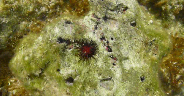 dans une anfractuositéde rocher (plage de Méditerranée)