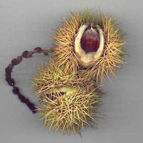 Le Châtaignier (Castanea sativa Miller de la famille des Fagacées) est un bel arbre à port majestueux et tronc épais et court. Il est cultivé pour son fruit, la châtaigne et pour son bois.