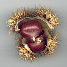La bogue de la châtaigne est un involucre (comme la cupule du gland de chêne). Elle contient les fleurs femelles qui donnent les châtaignes à maturité. La châtaigne est donc un fruit (akène) contenant une graine unique. Ceci la distingue du marron du marronnier qui est une graine enveloppé dans un fruit épineux et déhiscent.