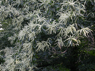 Les fleurs mâles sont disposées sur des chatons. La production de pollen est considérable et permet d'assurer une pollinisation par le vent.