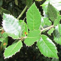 Certains Chênes, principalement en région méditerranéenne ont des feuilles persistantes et plus ou moins coriaces. Elles sont entières, à bords lisses ou légèrement dentées chez le Chêne vert (Quercus ilex) et le Chêne liège (Quercus suber). Elles ont des lobes aigus faisant penser aux feuilles de houx chez le Chêne kermes (Quercus cocccifera) et parfois chez le Chêne vert.
