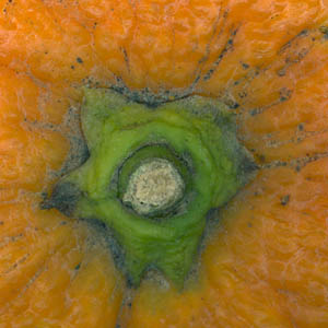 Cette orange présente une structure particulière à l'opposé du pédoncule. Cette structure ressemble à un ombilic (nombril). Cette orange présente dans sa formation deux cycles de carpelles ce qui aboutit à la formation d'une petite orange à l'intérieur de la grande. L'expérience précédente permet de voir les deux cycles de faisceaux carpellaires disposés souvent de manière un peu désordonnée.