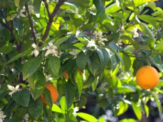 L'Oranger est un petit arbre planté pour son aspect décoratif dans les jardins et le bord des rues des régions méridionales.