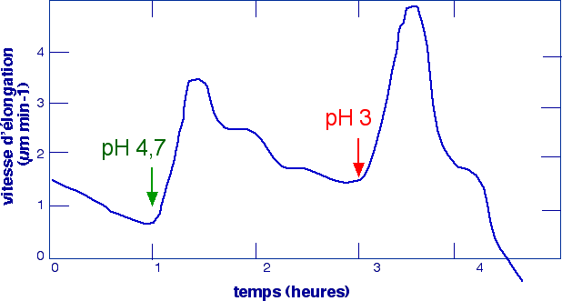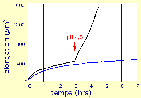 de l'auxine. Le pH très acide (3) provoque une stimulation