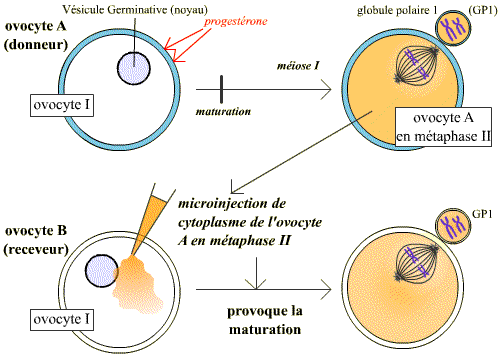 Expérience d'injection de cytoplasme entre des ovocytes de