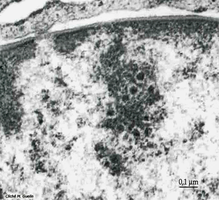 visibles au sein de la frange, au contact même de la chromatine