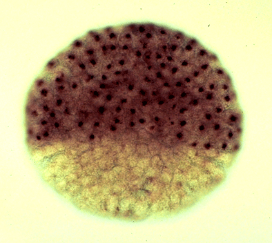 Blastula d'oursin marquée par immunolocalisation de l'enzyme HE.