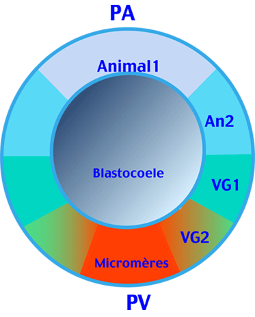 de la blastula d'oursin. Les cinq étages de cellules possèdent