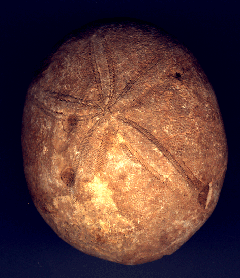Test fossile d'un oursin du crétacé. On reconnait bien la symétrie pentaradiée.