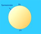 point d'entrée du spermatozoïde jusqu'à l'opposé